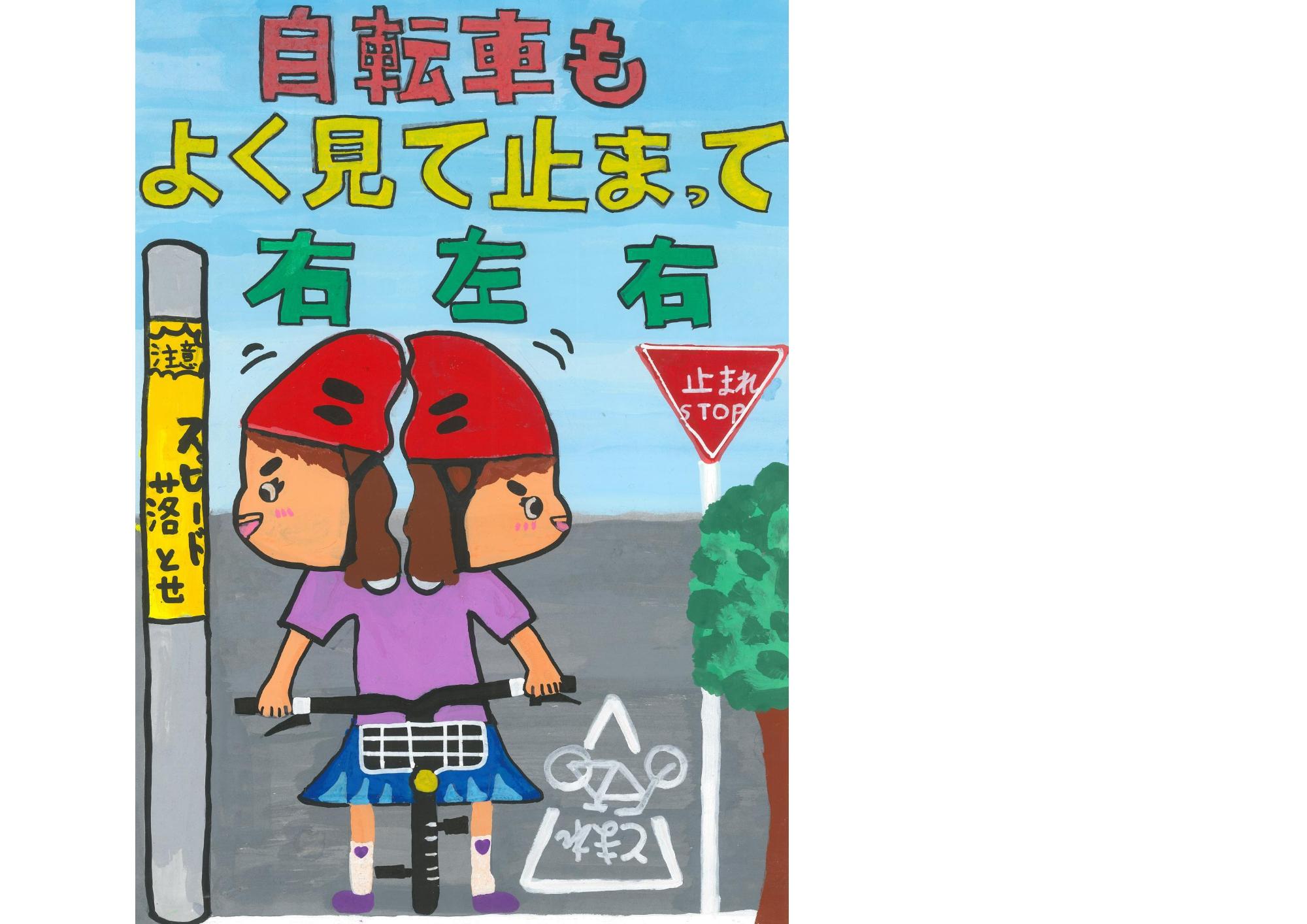 今年度は、小学生が対象の交通安全部門に625点、中学生が対象の防犯部門に11点、小学4~6年生と中学生が対象の歩きスマホ防止部門に354点の応募がありました。 審査の結果、交通安全部門については、最優秀賞1点、特別賞1点、優秀賞6点、防犯部門については、最優秀賞1点、特別賞1点、優秀賞5点、歩きスマホ防止部門については 小学生の部、中学生の部でそれぞれ最優秀賞1点、優秀賞3点が選ばれました。