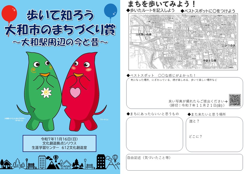 市は、快適なまちづくりの推進や大和らしい「まち」の創造を目的に、市内のまちづくりに関するすぐれた取り組みを「大和市まちづくり賞」として表彰しています。それらの事例を広く周知し、市民の主体的なまちづくり活動につなげることを目的として、令和元年、「第1回歩いて知ろう大和市まちづくり賞」を開催、令和5年に第2回を開催しました。