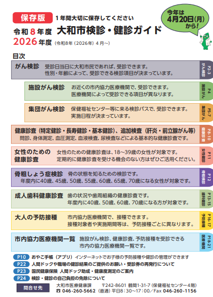 令和8年度(2026年度)大和市検診・健診ガイド 全ページ版 (PDFファイル: 2.6MB)