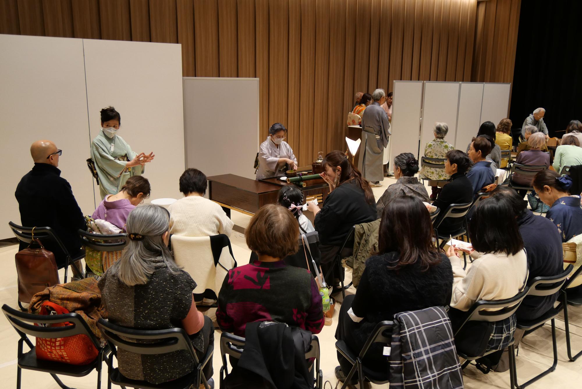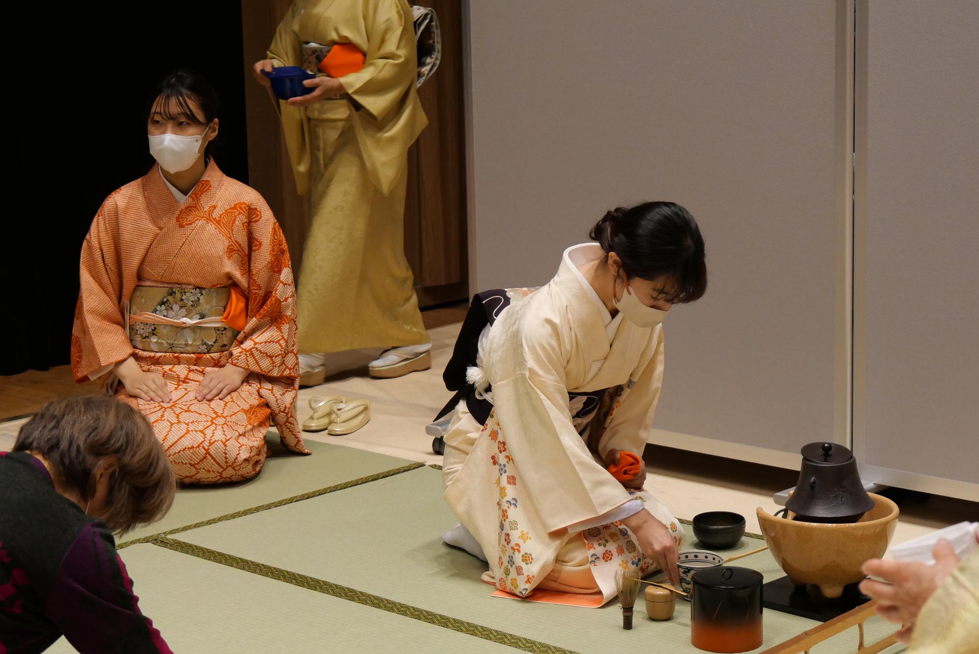 このイベントは、大和茶道会の3流派が一堂に会した大和市主催のお茶の新年会です。このほか、子ども茶道教室の受講生や厚木基地シャーリーランハム小学校・アーン小学校教職員による茶席も設けられます。