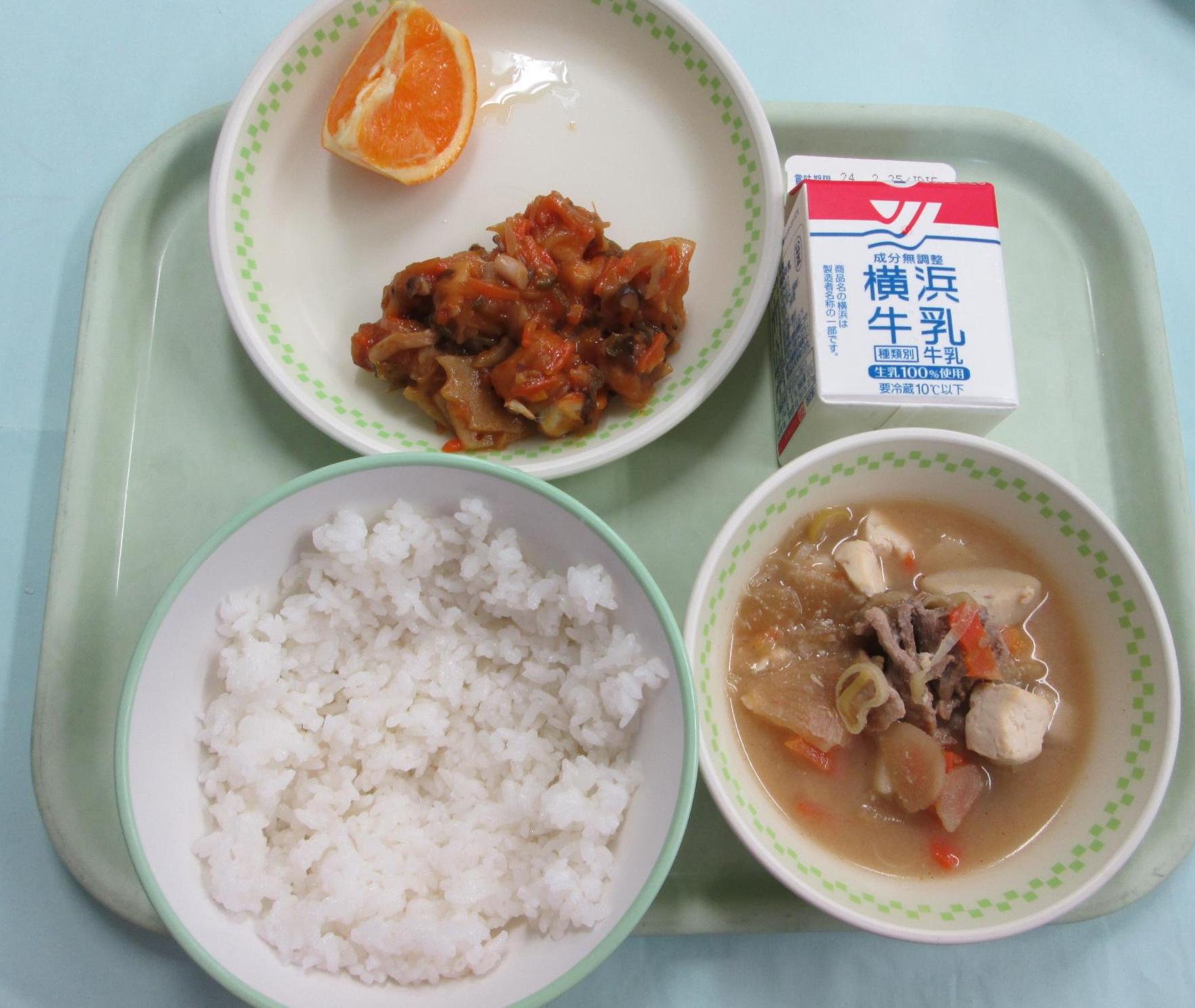 大和市では、小学校・中学校の献立をそれぞれ分けて考え、給食を提供しています。こちらのページでは、一カ月の中のある日の献立のメニューを、写真と合わせて紹介します。