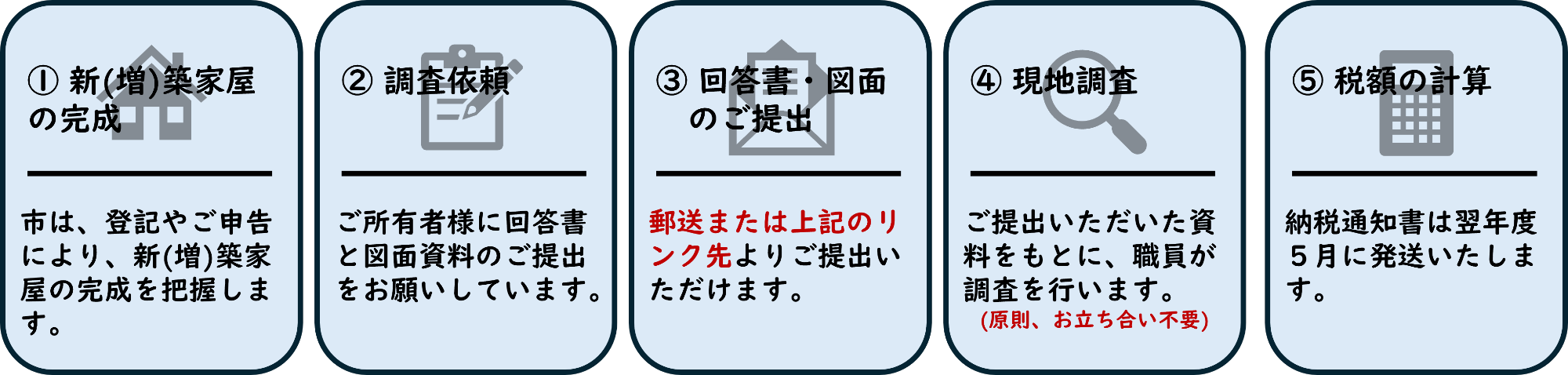 税額算出のための家屋調査は、地方税法にもとづく重要な調査ですので、皆さまのご協力をお願いいたします。