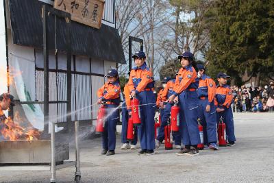 開会式では、消防職員・消防団員・米海軍日本管区司令部消防隊員・自衛消防隊員とともに参列し、大人に引けを取らない立派な礼式を披露しました。
