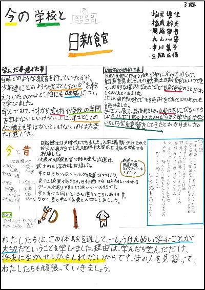 「私たちは、2泊3日で学んだ様々な物事を、自分たちなりに完成に基づいてポスターを作成しました。そして、宿泊研修で得た学びが少しでも多くの人に伝わり、農業や歴史について、考えるきっかけになったら嬉しいです。」