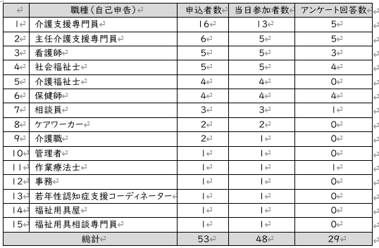 ・どうしても会話の中で「認知症は・・・」と偏見のある会話になってしまう。認知症であってもなくてもといった考え方に変わり、1人の人としてその人に関心を持って接することが大切だと感じた(介護福祉士)