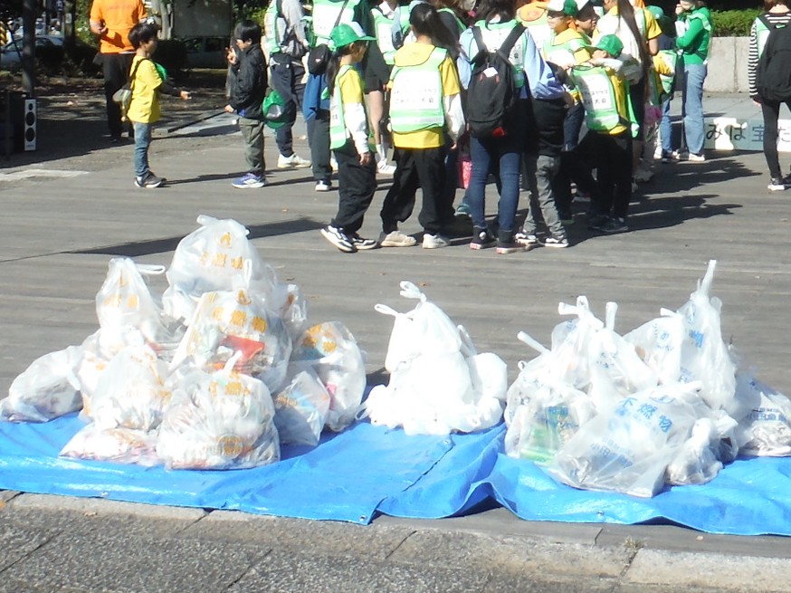子どもたちは元気いっぱいに、たばこの吸い殻や空き缶や空き瓶などを隅々まで探して拾っていきました。