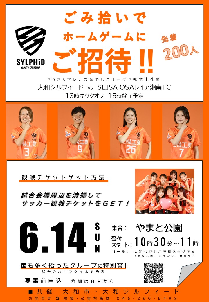 大和シルフィード×ごみ拾いイベント(令和8年6月14日、やまと公園)