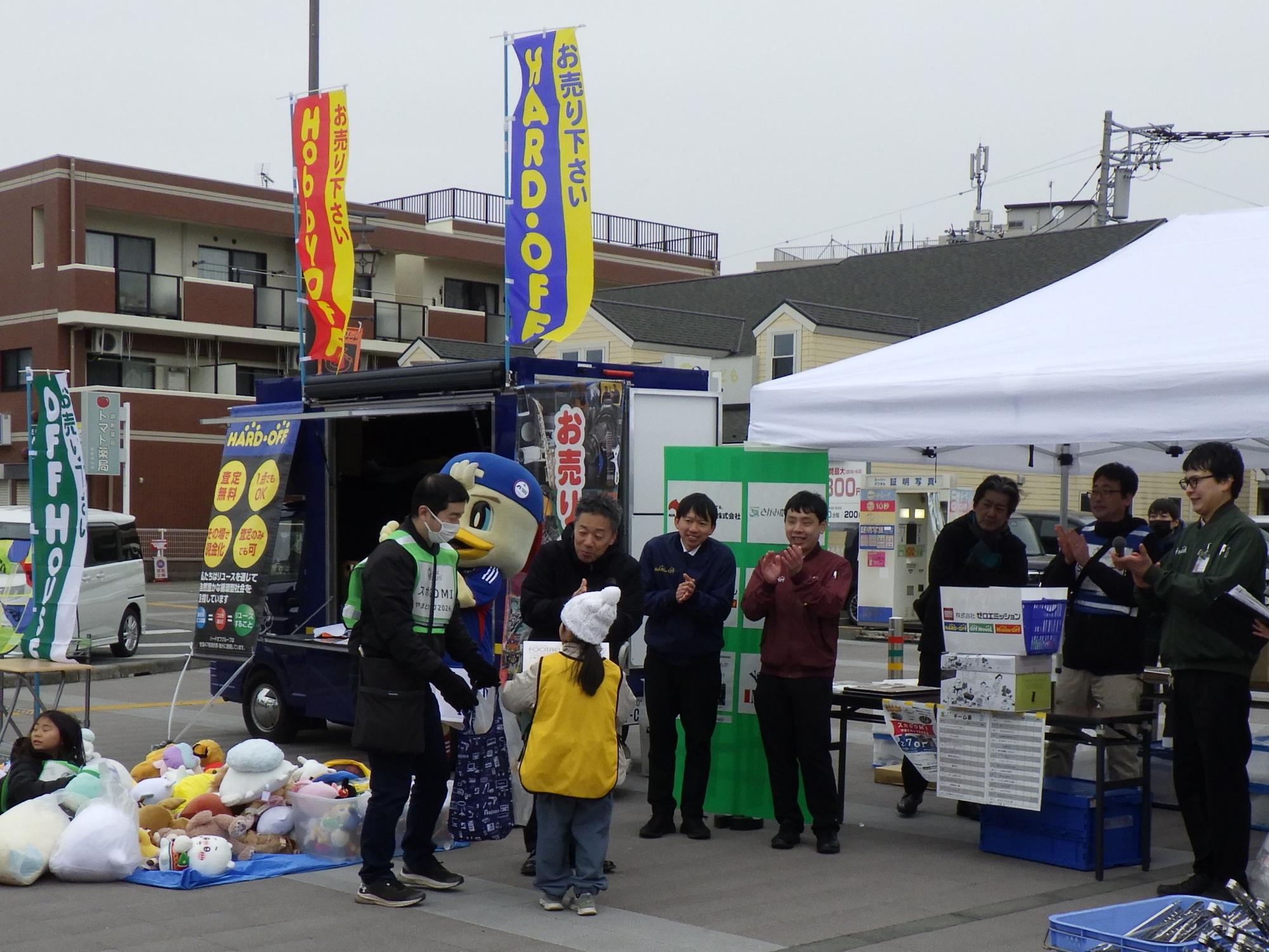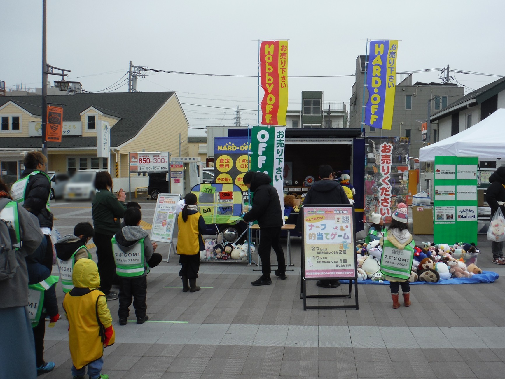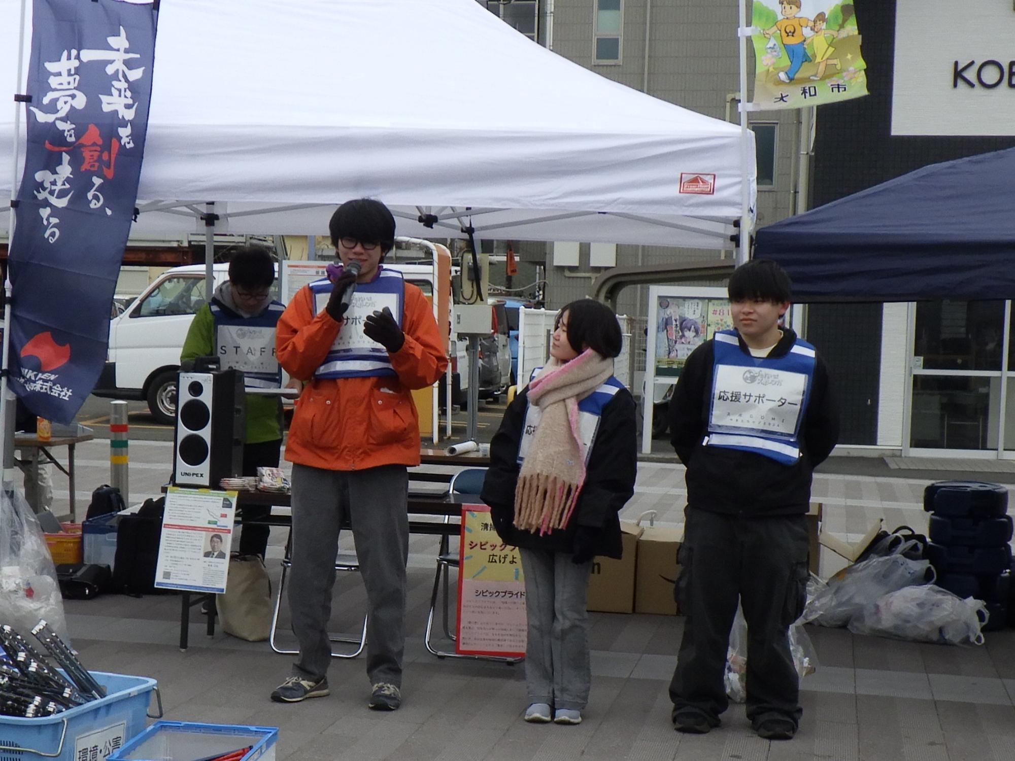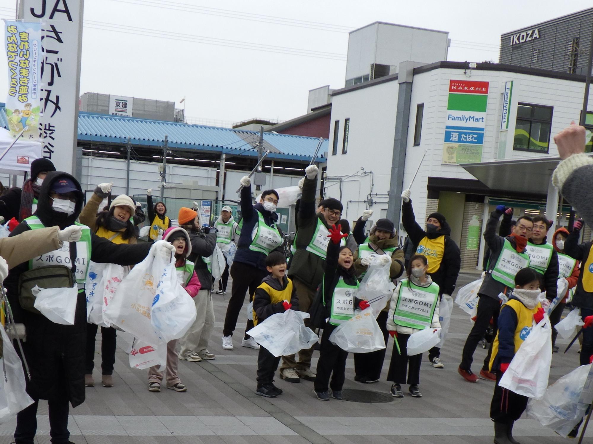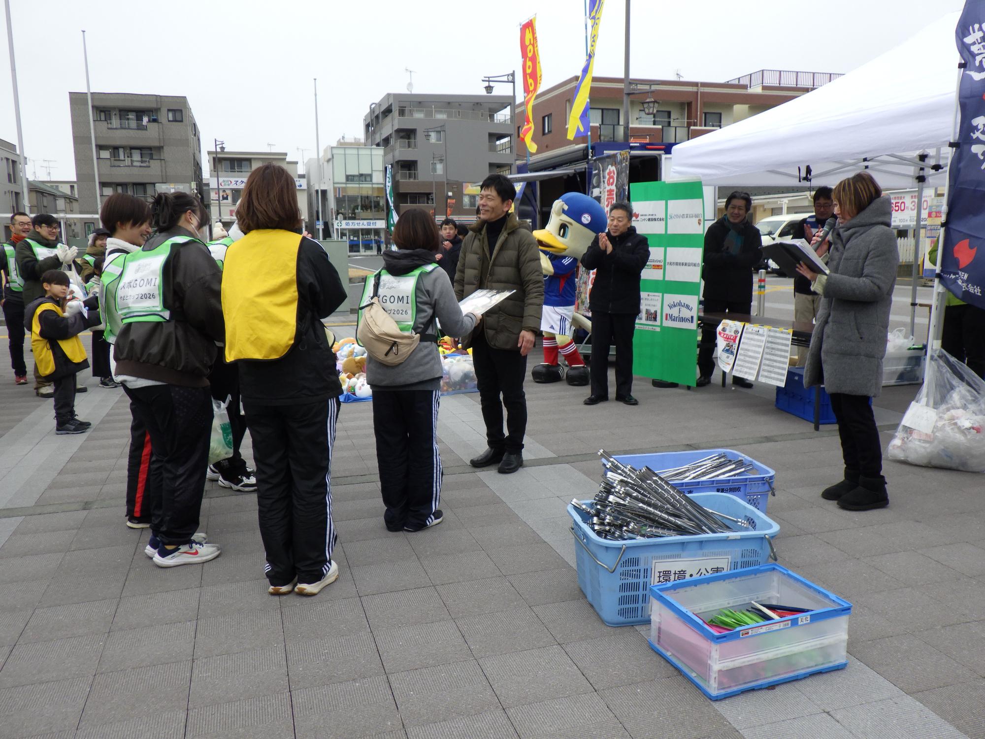時おり小雪がちらつく厳しい寒さのなか、30チーム計117人が参加。なかでも高校生以下の参加者が約30名集まり、活気溢れる大会となりました。マリノスケが参加し、参加者と一緒にエリア内の清掃活動を行いました。また、大和高校生徒会が、応援サポーターとして参加し、清掃活動に加えて大会スタッフの役割を担いました。