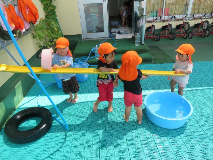 そんなたんぽぽ組さんの、ある日の水遊びです。