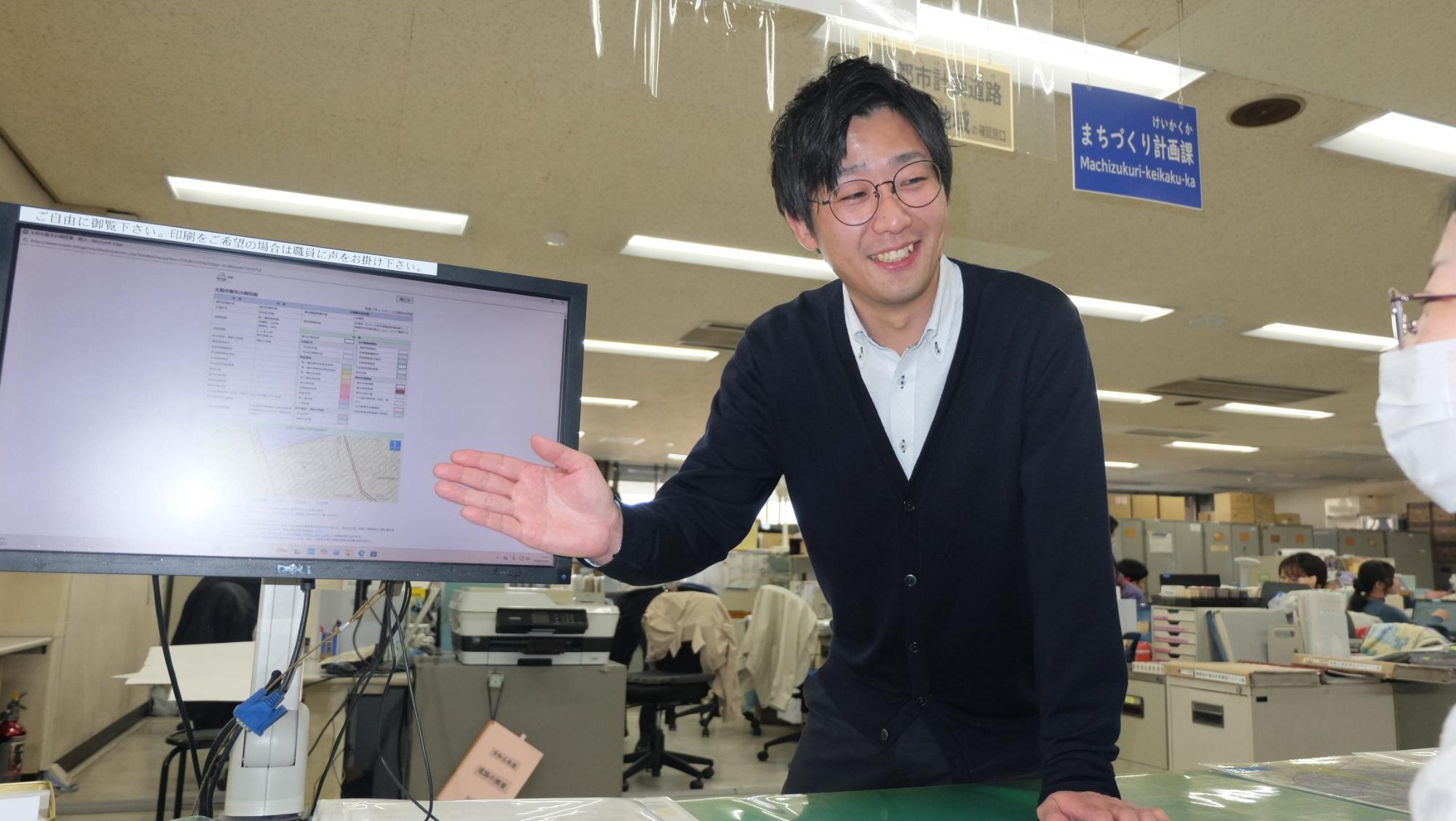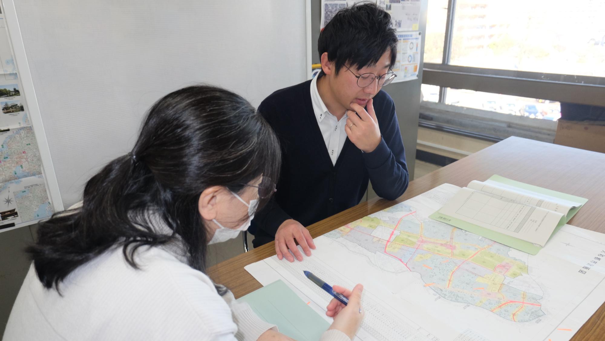 昨年今の職場に部署異動となり、これまで都市計画の業務は経験がなく、わからないことが多くありました。そのため、他の職員に質問することが多くありましたが、嫌な顔一つなく丁寧に教えてくれる方々ばかりで助かっています。