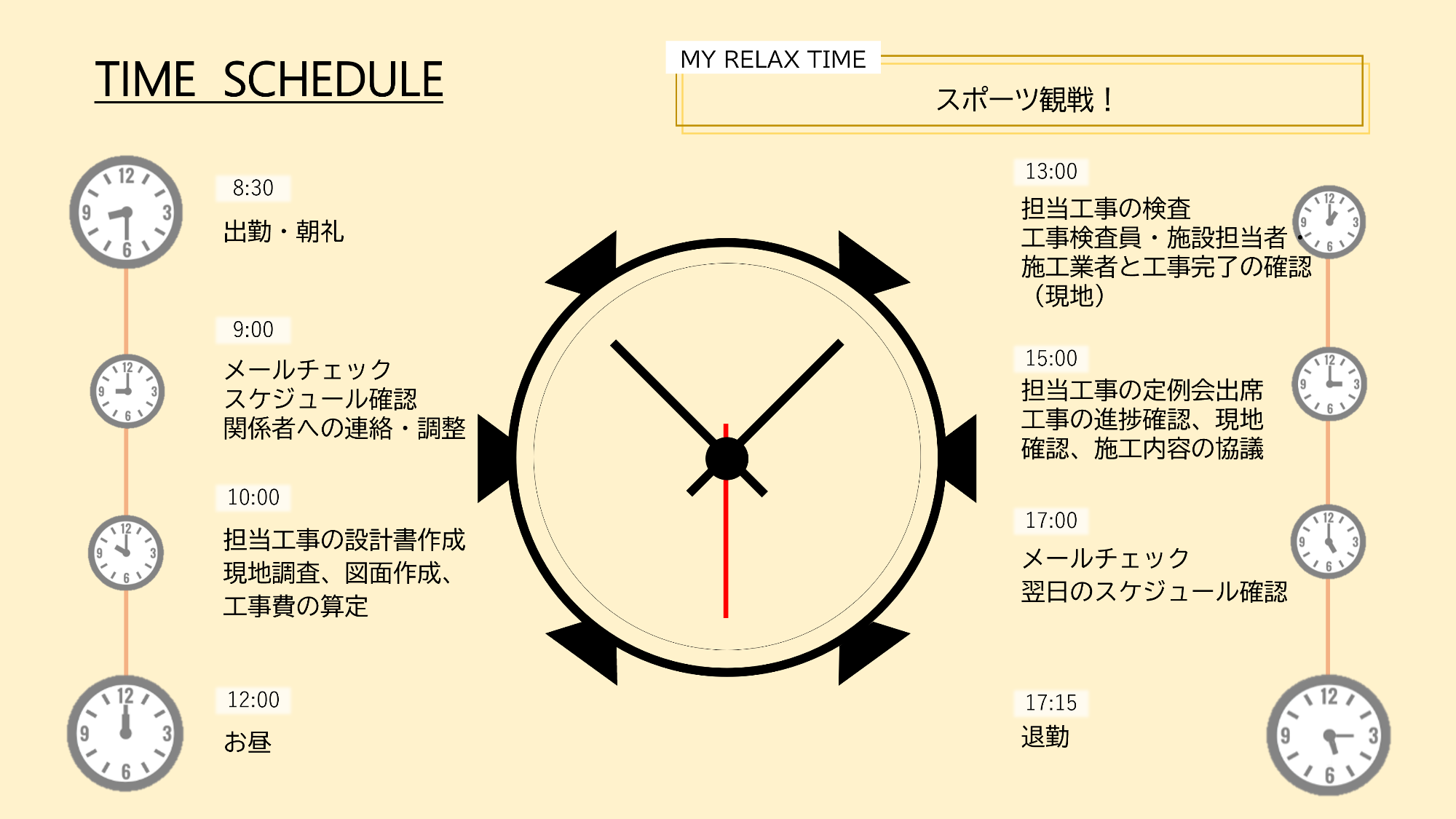 特に仕事をしている時に感じますが、一人で出来る範囲は狭く、関係者との協力関係がないと何事も成し遂げられないと考えています。市職員(同じ課、他の課)、施設担当者、設計監理者、施工業者などそれぞれ違った立場の方と意識を合わせることで、みなさんが納得のいく結果を生み出せるのだと思います。