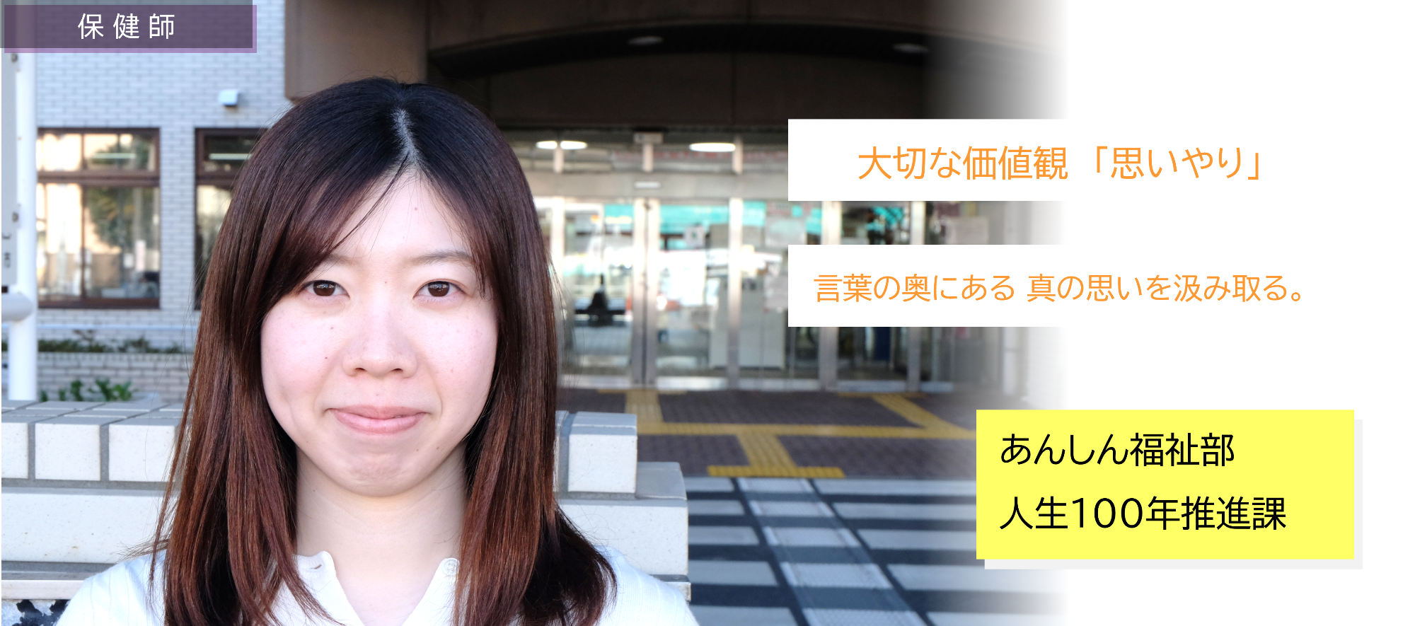 以前は病棟で看護師をしていましたが、入院期間だけでなく退院後の生活や地域の方と長く関われる保健師の仕事に魅力を感じました。行政保健師は住民の話を丁寧に聞き、関係機関をつなぐ役割であり、「人に寄り添える保健師になりたい」と思い、入庁を志しました。