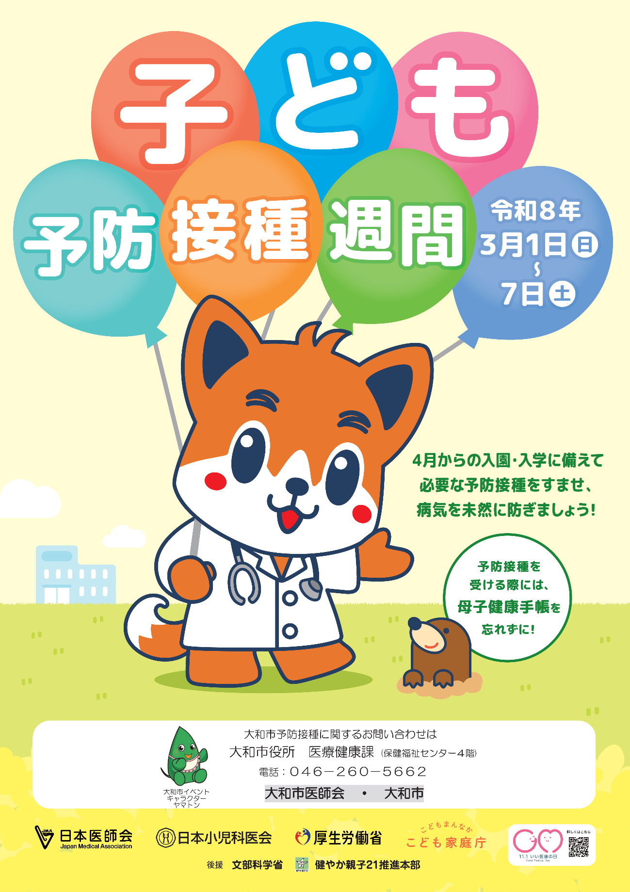 3月1日~3月7日は、ワクチンで防ぐことができる病気から子どもたちをまもるための「子ども予防接種週間」です。